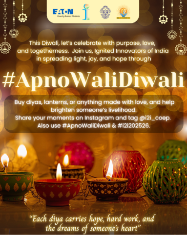 Overview: Ignited Innovators of India (i2i) launched a social initiative titled “Apno Wali Diwali” with the aim of spreading joy, hope, and community spirit during the festive season. The campaign encouraged students and i2i participants to buy diyas, lanterns, candles, or any handcrafted items directly from local vendors and artisans, thereby supporting their livelihoods.