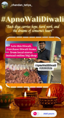 Objective: To promote local artisans and small vendors by encouraging students and participants to support them during the Diwali festival.